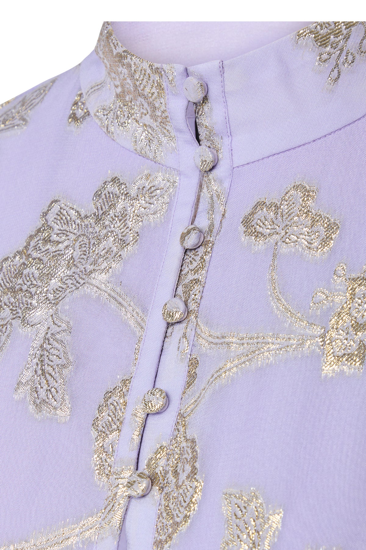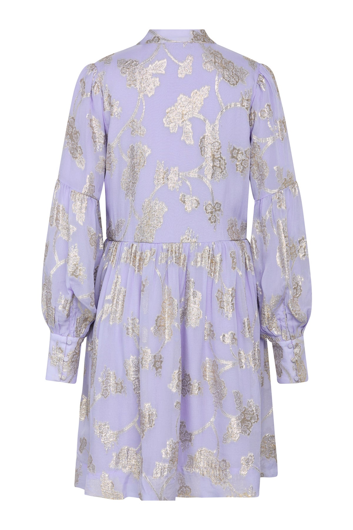 Beautiful metallic-patterned dress. The dress is designed in a regular fit with a lot of flare at the hem and fabric-covered buttons.