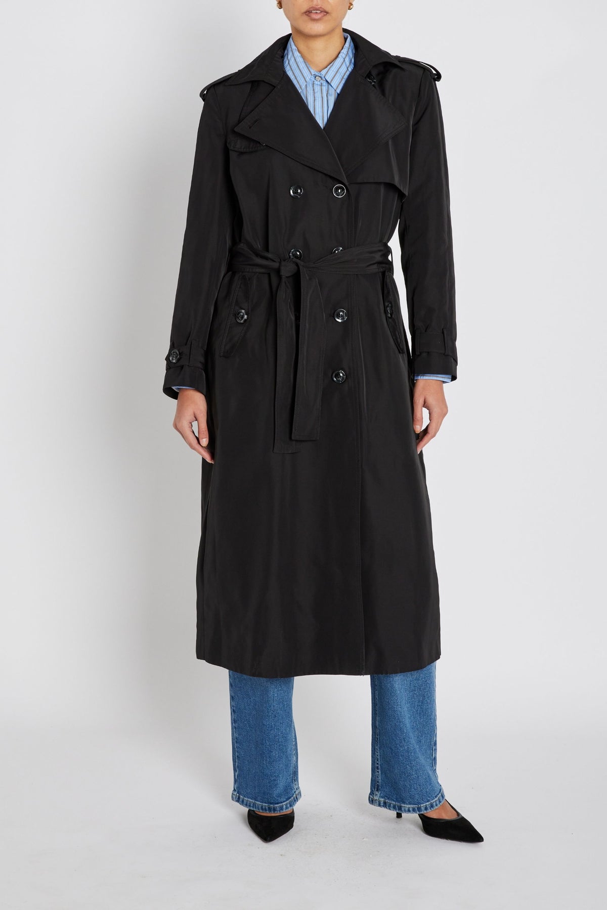 - Regular fit - Double-breasted closure - Tie belt at waist - Lined