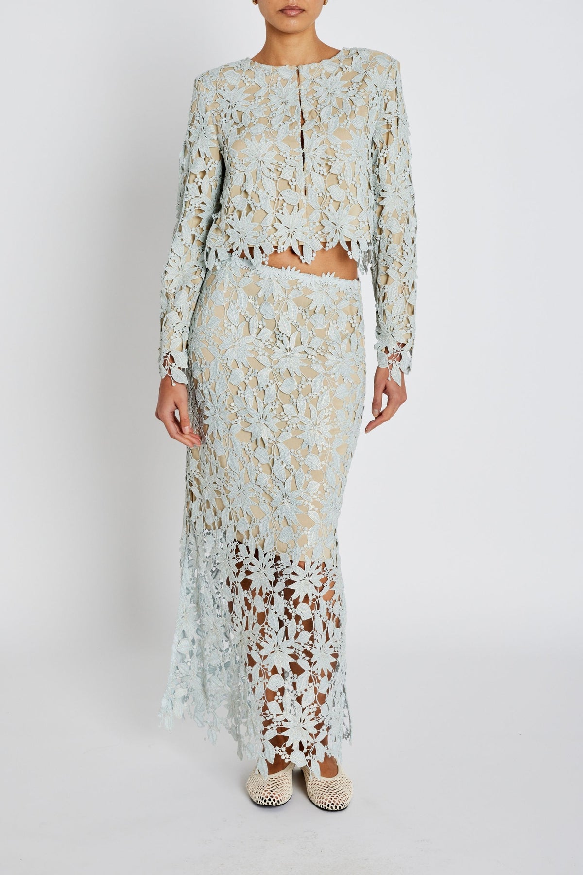 PinangaBBJoani skirt is a feminine skirt crafted in decorative lace with a regular fit and an elegant, long silhouette. The sheer expression combined with the dense floral structure creates a refined and modern look.