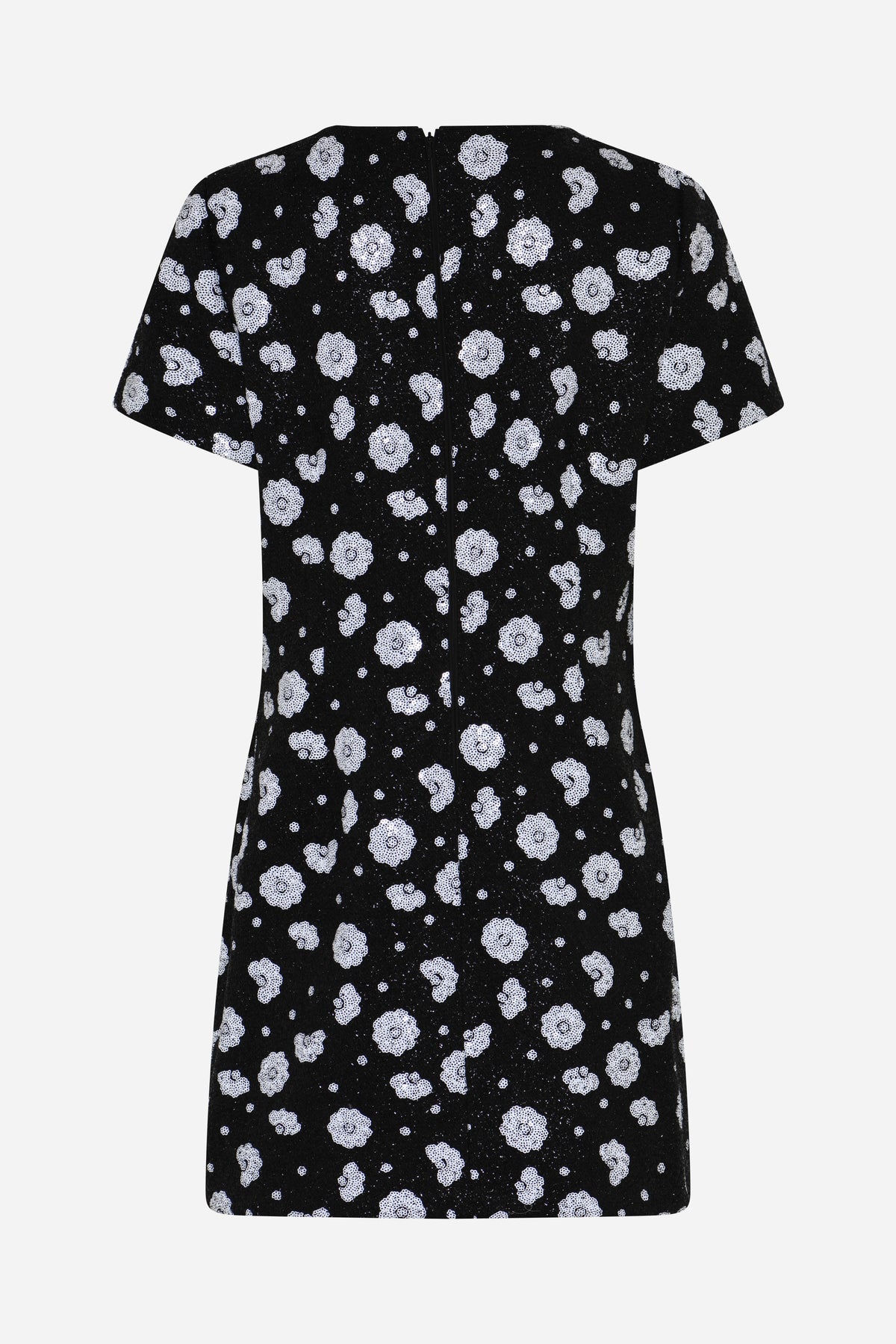 The BrittleBBSilja dress is a short dress with short sleeves, a straight fit, and full floral sequin embroidery. An eye-catching style with a sparkling finish and modern elegance. Style with simple heels and jewelry for a formal event or New Year's, or wear it with tights and boots for a cool evening look. A party dress that combines edge and femininity.
