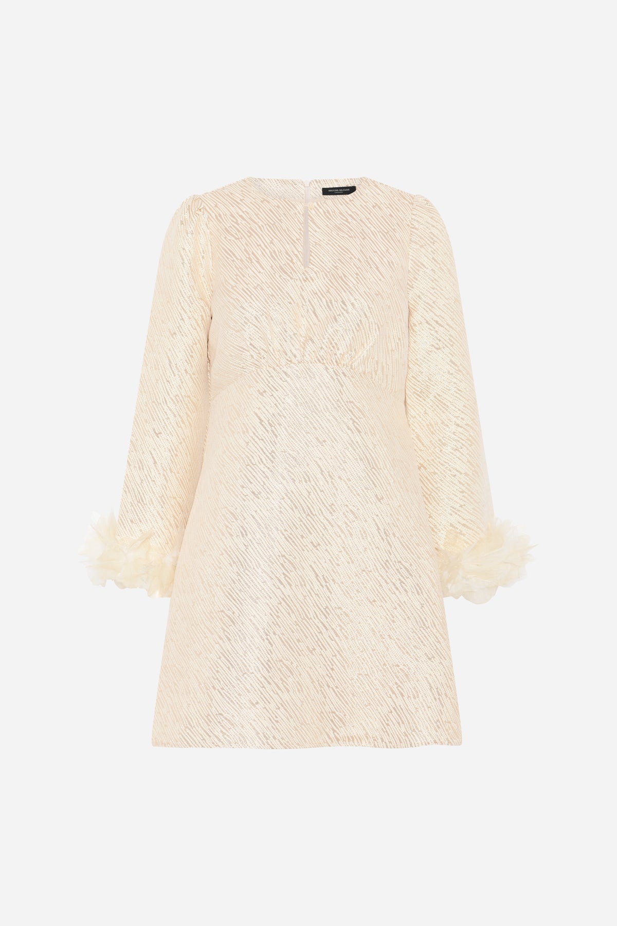 CocosBBUlja dress is a short style with a regular fit, long sleeves and decorative feather cuffs. Crafted in shimmering fabric for an exclusive look.