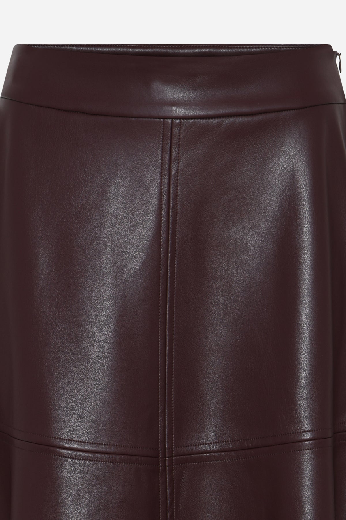 The VeganiBBImma skirt is a mid-length A-line skirt in soft vegan leather with a high waist and clean lines. Perfect for elegant and modern everyday looks.