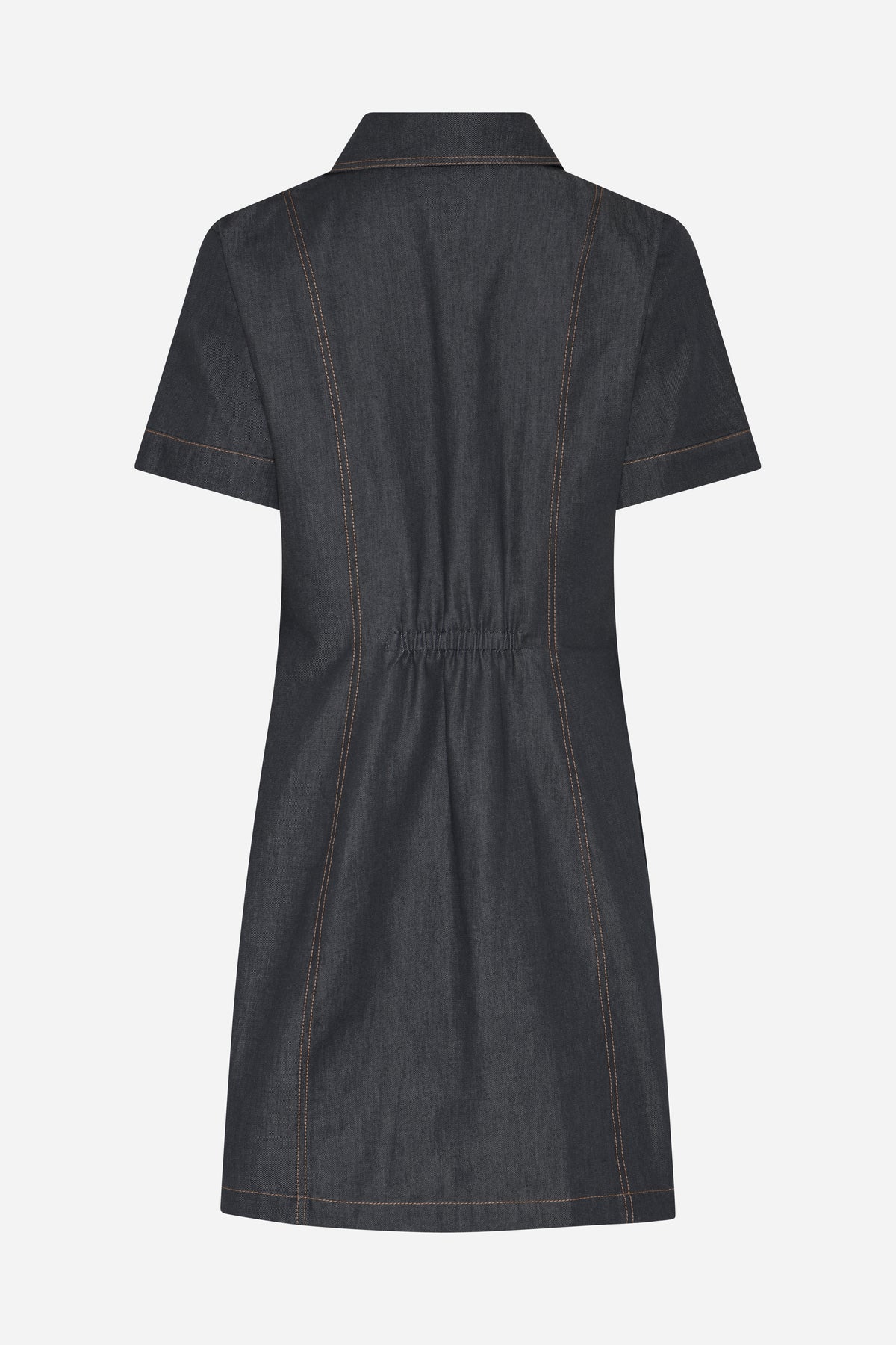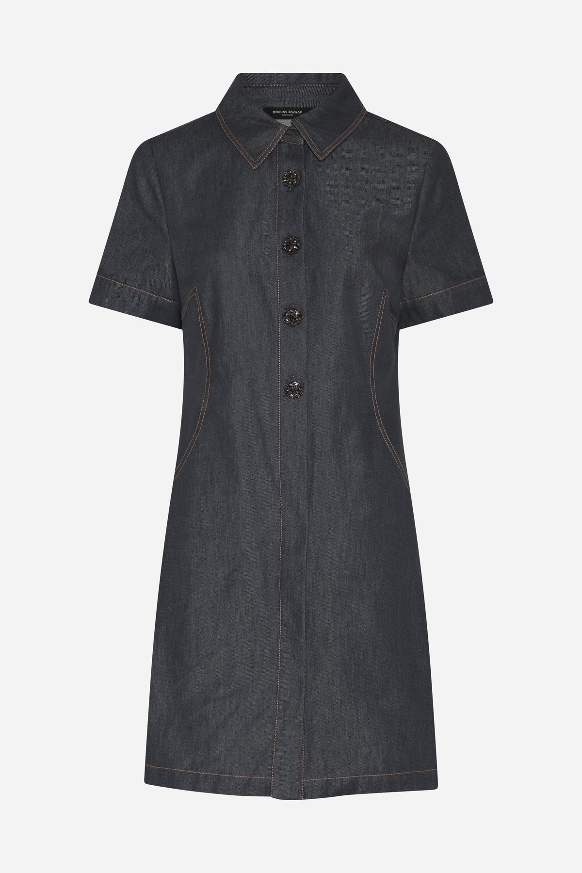 BellisBBZendias dress is a feminine denim dress with a regular fit and a lightly tailored silhouette. Short sleeves, a defined waist and decorative buttons create a modern and versatile expression.