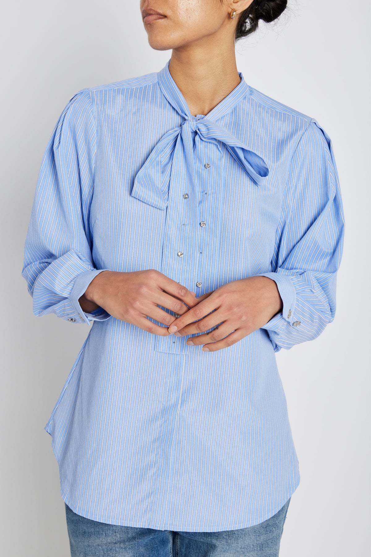 - Regular fit - Lightly fitted silhouette - Bow detail at neckline - Long sleeves with cuffs
