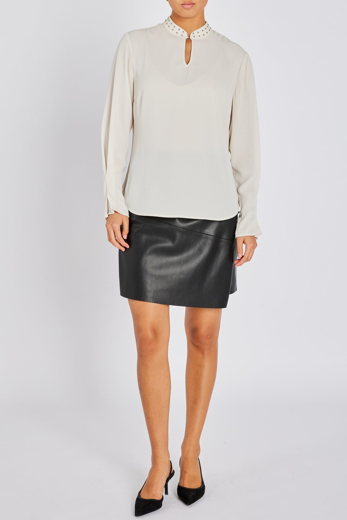 - Regular fit - Long sleeves - Decorative studs at neckline - Keyhole detail at front