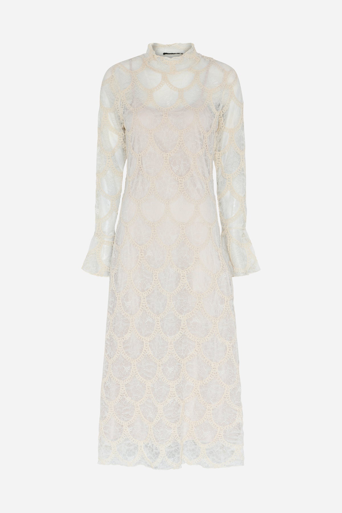 DeodaraBBTulla dress is an elegant lace style with a regular fit, high neckline and long sleeves with subtle flared cuffs. Designed in a sheer patterned fabric.