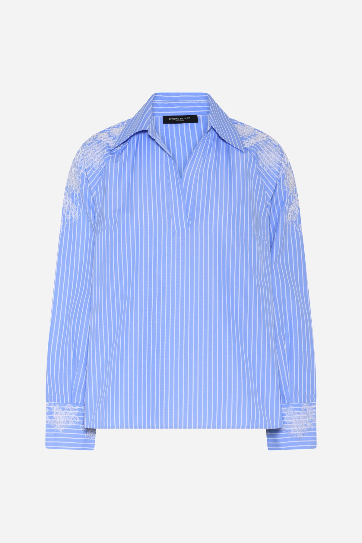 - Classic stripes - Embroidery details on shoulders and cuffs - Open neckline with collar - Long-sleeved design