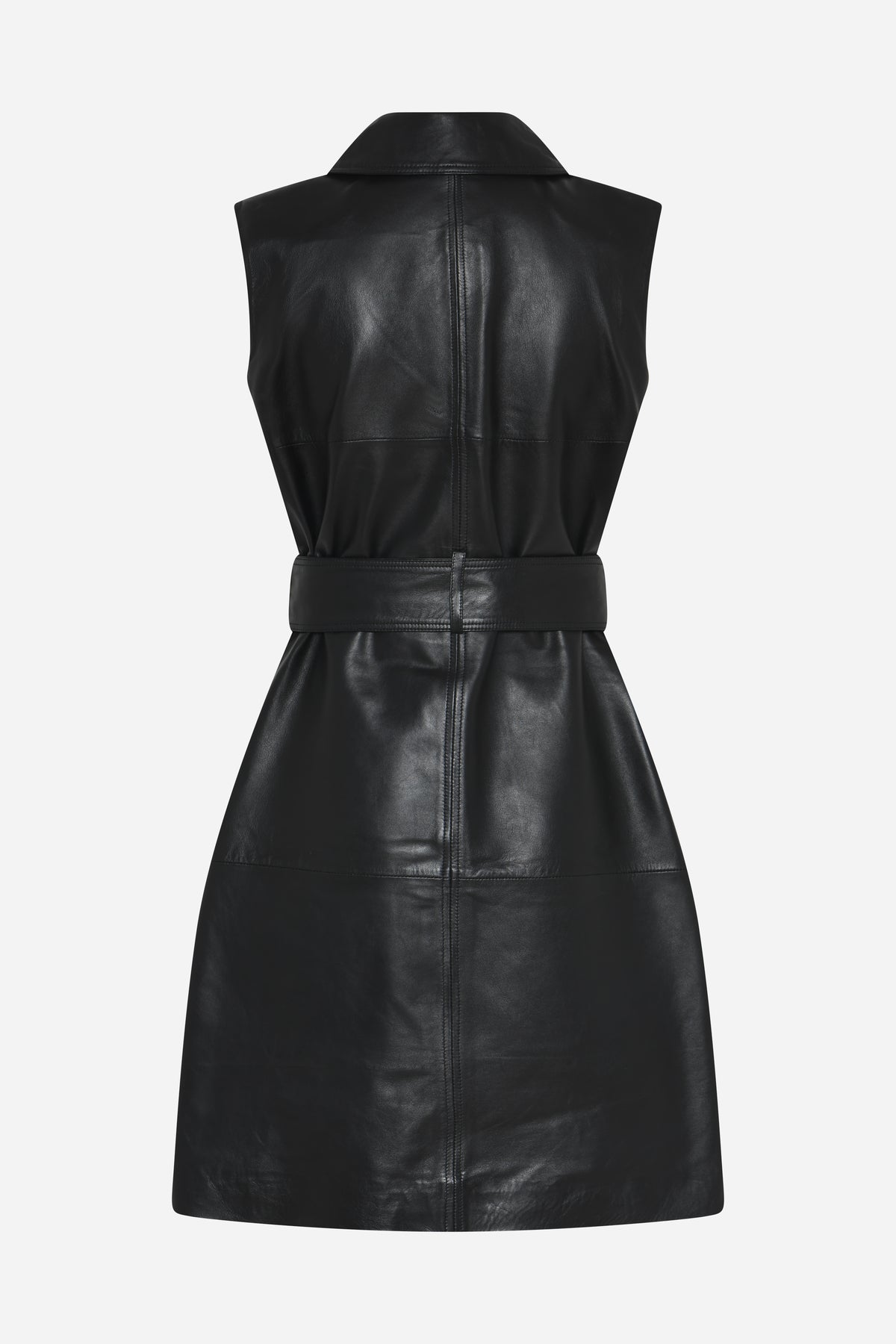 SoftBBToria leather dress is a feminine dress with a tailored fit, creating a strong and elegant silhouette. The leather design adds an exclusive expression with focus on shape and details.